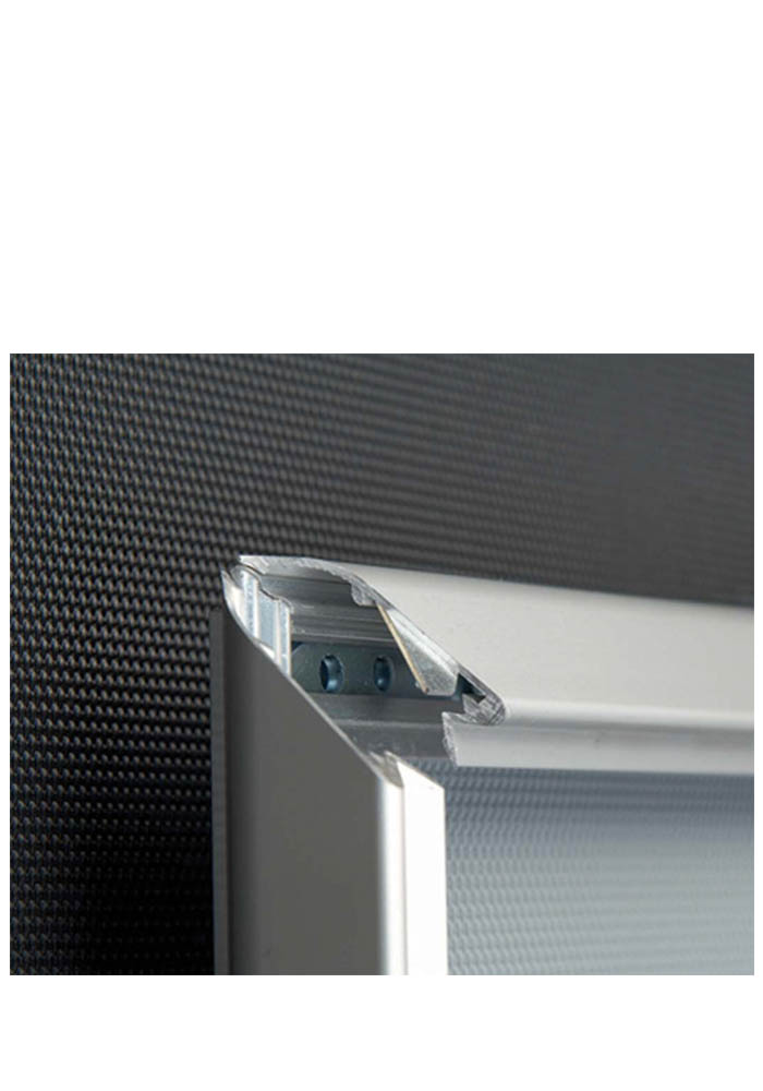 Låses med nyckel och är sk. ”klåfingersäker” ram som håller vandalerna borta. Profilbredd 32 mm. Lås på en kortsida som låser alla 4 lockprofiler.